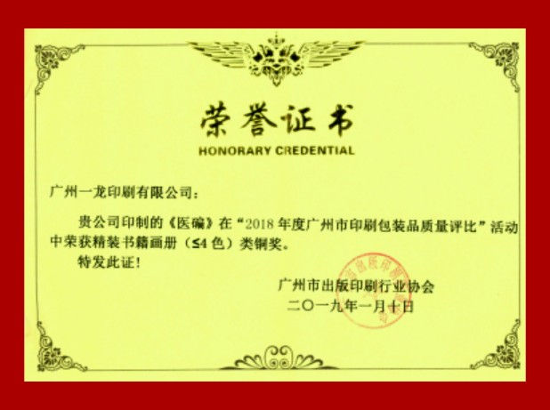 2018 GUANGZHOU PRINTING AND PACKAGING QUALITY BRONZE AWARD