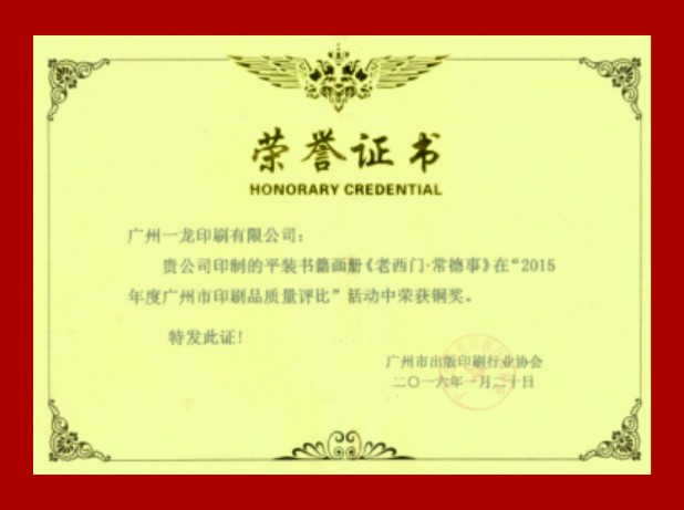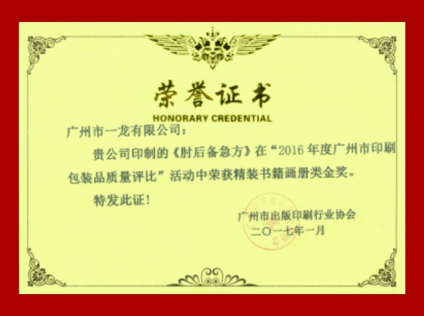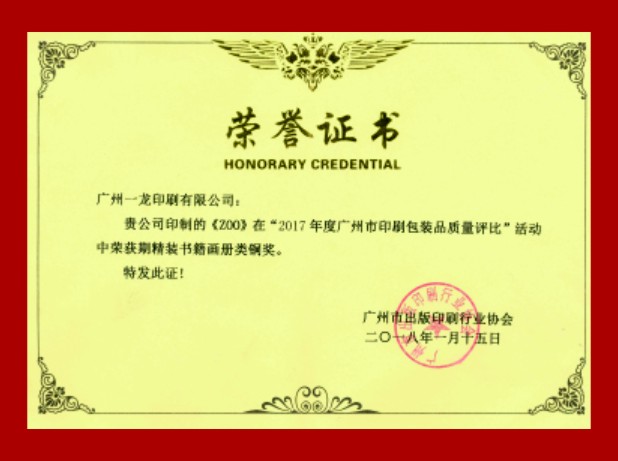 2016年度廣州市印刷包裝品質量評比優秀獎
